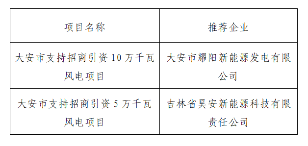 关于大安市支持招商引资风电项目建设指标竞争性配置优选结果的公示